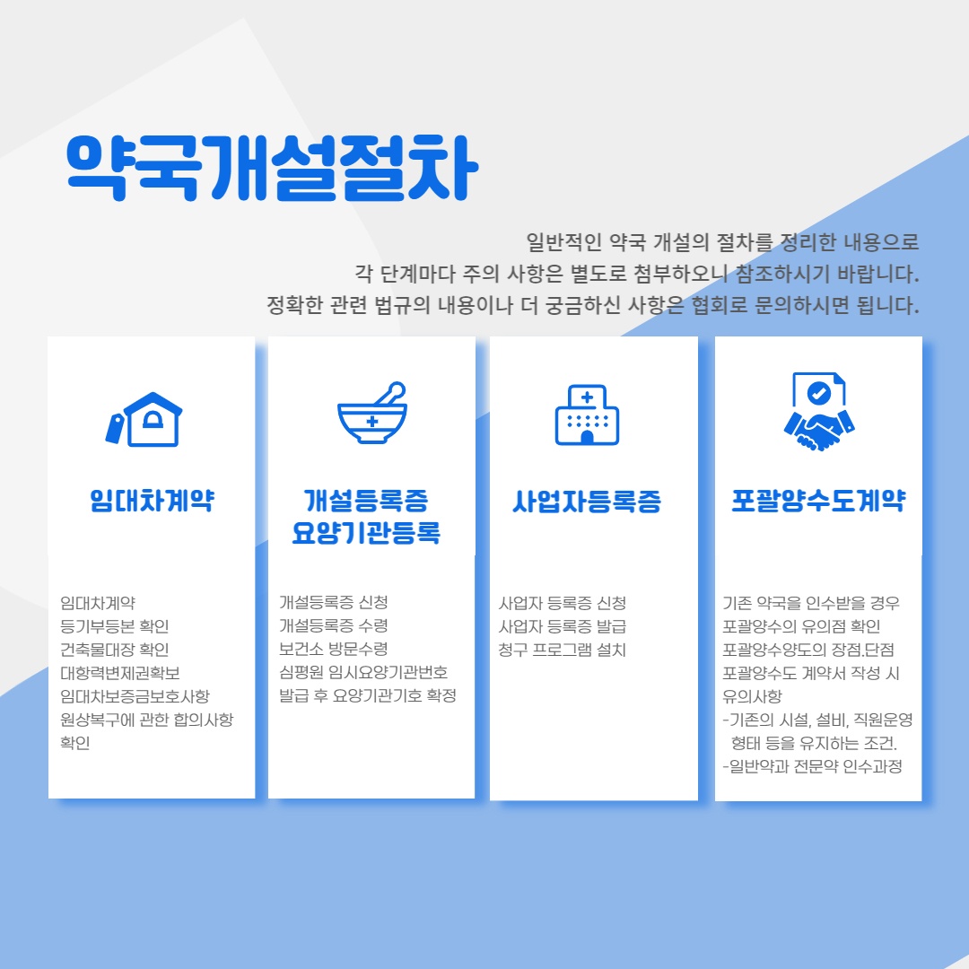 일반적인 약국 개설의 절차를 정리한 내용으로